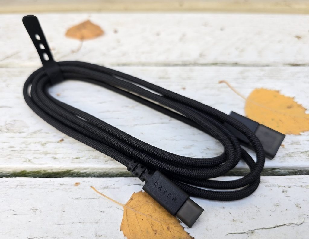 Cablul care permite utilizarea cu fir are o cămașă textilă și nu face nici el rabat de la calitate/prezentare. Mufele sale (la fel ca cea a dongle-ului USB) sunt protejate cu mici căpăcele pentru a nu lăsa imporitățile să intre acolo.