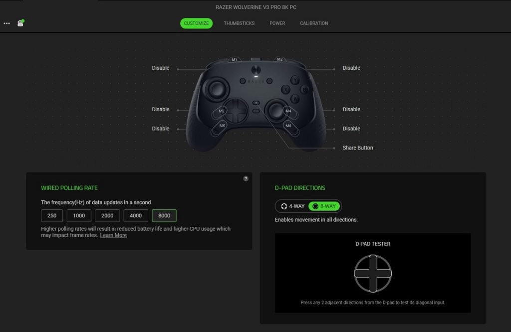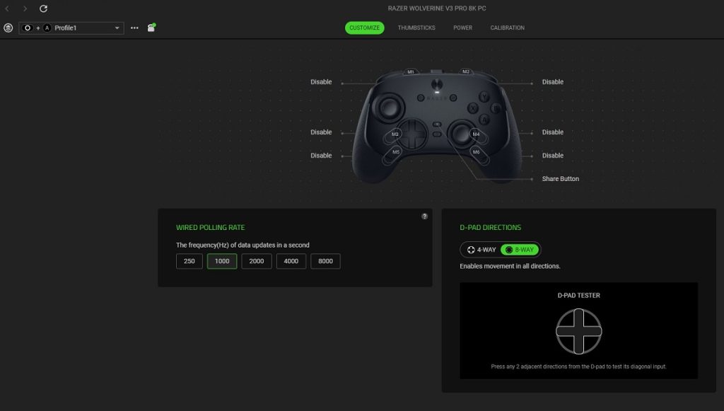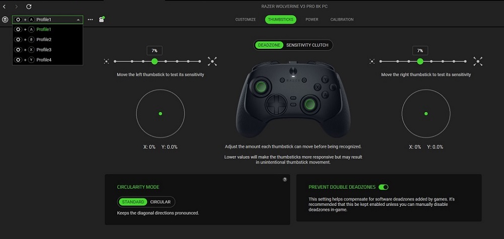 Tot aici se pot calibra thumbstick-urile sau se pot configura butoanele suplimentare de pe controller.