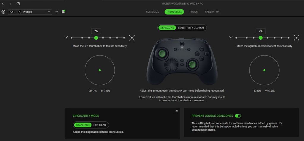 Aplicația care permite accesul la configurările controllerului nostru este Razer Synapse. Aici utilizatorul își poate pune amprenta personală asupra setărilor, pentru a le face cât mai apropiate de preferințele sale. În acest mod poate fi crescută eficiența în timpul sesiunilor de gaming, în timpul duelurilor pe viață și pe moarte, în care orice fracțiune de secundă poate face diferența.