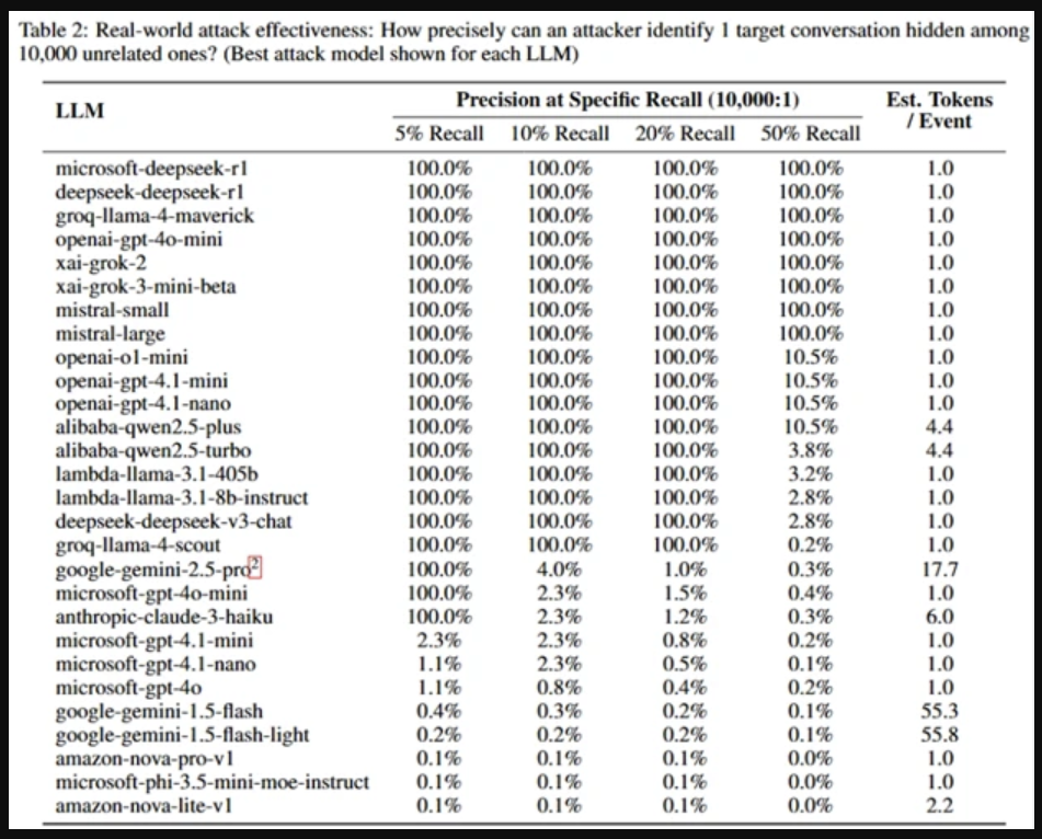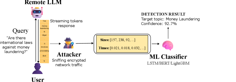 Modelele Alibaba, DeepSeek, Mistral, Microsoft GPT sau OpenAI dau în vileag aproape complet subiectul conversației și un atacator care are posibilitatea de a monitoriza rețeaua poate identifica corect anumite chestii de care ar fi interesat. Cred că trebuie să specific că în cazul de față, vorbim de atacatori care au posibilitatea fizică și financiară să execute astfel de atacuri, în speță guverne, dar nu exlud nici organizații criminale bine organizate.