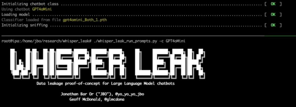 Whisper Leak este identificat de Microsoft ca o problemă asociată modului în care se desfășoară conversația cu un AI, unde un atacator cu suficiente resurse ce poate să observe traficul dintr-o rețea, are posibilitatea de a identifica cu un grad foarte ridicat de acuratețe, ceea ce se discută cu AI-ul. Jonathan Bar Or și Geoff McDonald din Microsoft Defender Security Search au publicat un material în care discută despre acest tip de atac și trag un semnal de alarmă vizavi de implicațiile sale. Prin analiza dimensiunii pachetelor, a timpului de răspuns și a modului în care acestea se repetă în timpul comunicației cu un AI, e posibil să se poată detecta subiectul conversației, în ciuda faptului că traficul este criptat. Și atacul a funcționat pentru 29 din cele mai populare modele, unele dintre ele cu un grad de certitudine de aproape 100% pe anumite subiecte.