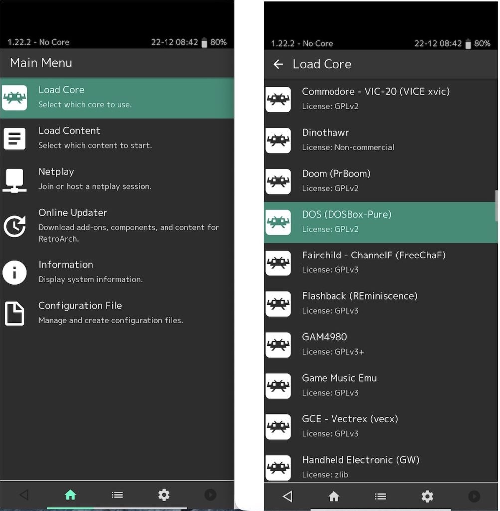 Mai exact până a (re)apărut retroArch, care nu doar că permite emularea MS-DOS dar are și opțiunea de a descărca și folosi o grămadă de alte module pentru a oferi accesul la platforme precum Atari, Commodore, Nintendo, ScummVM, Sega, chiar și ZX Spectrum.
