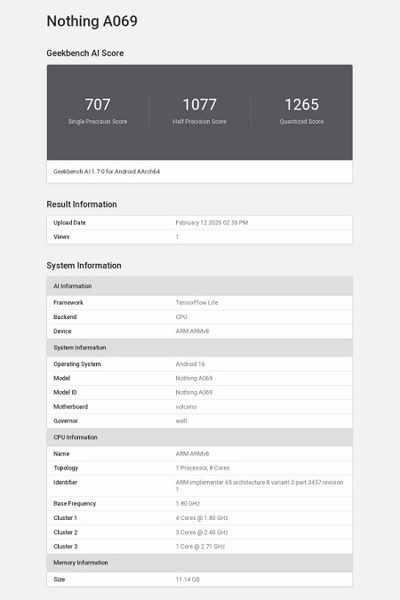 O unitate de test de Nothing Phone (4a) a rulat testele Geekbench AI. A lăsat astfel la vedere o informație importantă. Mai exact, a confirmat modelul de chipset pe care se va baza telefonul. Acesta va avea un nucleu hardware construit în jurul unui Snapdragon 7s Gen 4 de la Qualcomm.