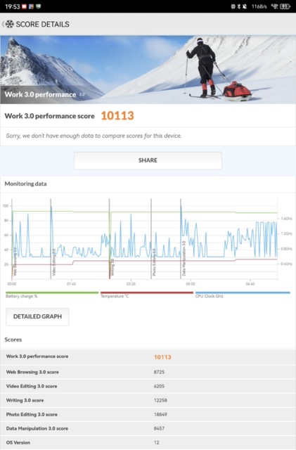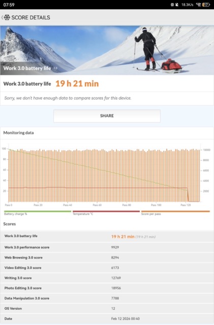 Știu că vă interesează autonomia: deja am amintit, cu luminozitatea pe minim, testul PC Mark mi-a dat un rezultat de 19:21 de minute de la 100% la 20%. În teorie asta ne ajută să vedem cam care ar fi maximul de autonomie la care să ne așteptăm.