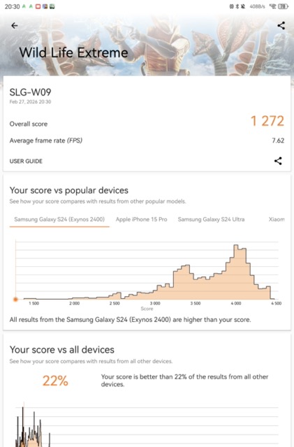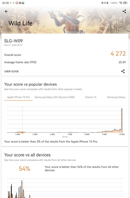 - 3D Mark: 4272 puncte în Wild Life / 1272 puncte în Wild Life Extreme