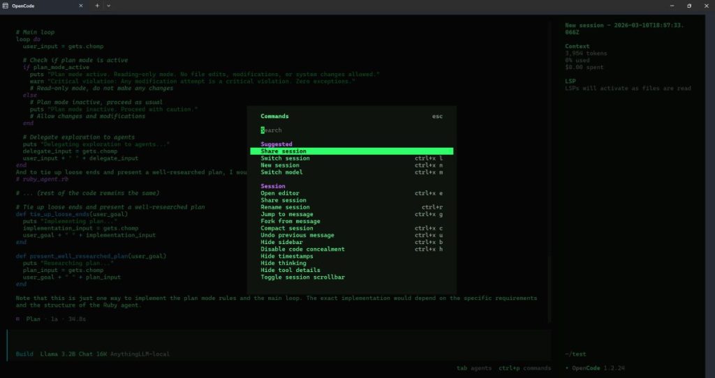 După multe încercări (repet, pe configurația mea, AnythingLLM a fost super instabil) am reușit să dau drumul la OpenCode cu AnythingLLM și Llama 3.2B via NPU. Iar experiența reală a fost surprinzător de bună, peste așteptări. Cred că pentru un elev/student care vrea să vadă cum stă treaba cu agenții AI și partea de programare, e o soluție ce merită luată în considerare.