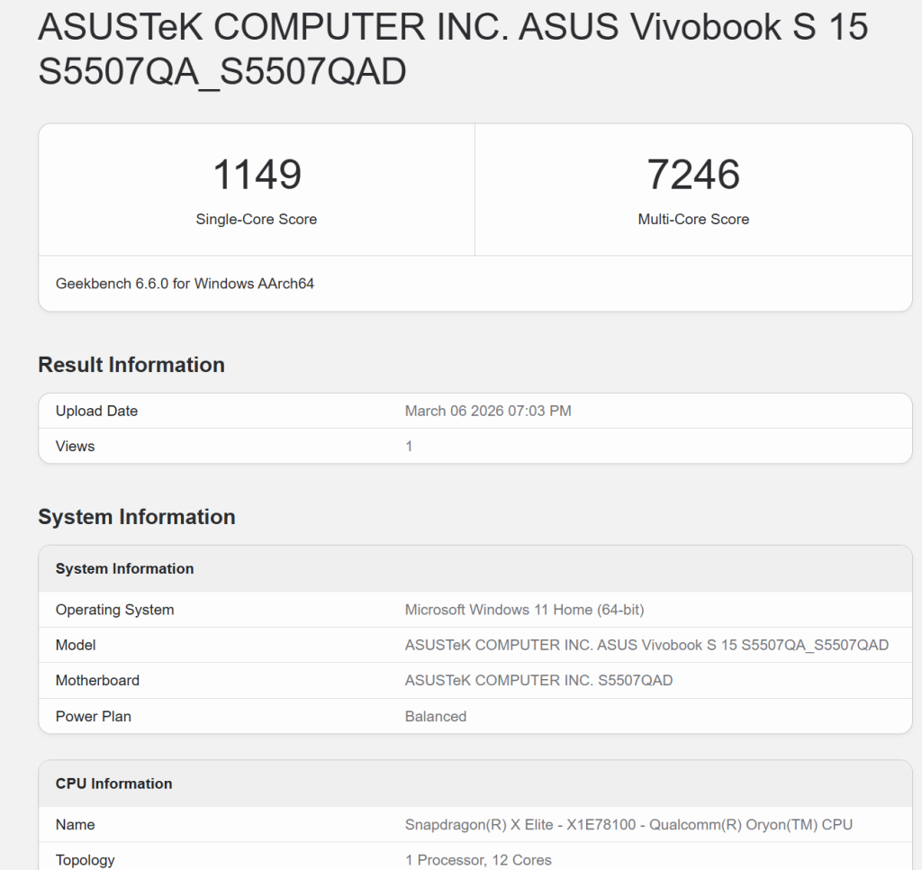 Pentru comparație, mai jos vedeți cum se descurcă un laptop Windows CoPilot+ pe platformă ARM cu Snapdragon X Elite, cel mai bun laptop ARM din generația anterioară și care se descurcă excelent pentru tot ce am nevoie, inclusiv să ducă niște docker-e sau un server MCP pentru AI. Îmi pare rău să văd că un laptop cu 32GB RAM, 1TB SSD și procesor Snapdragon X Elite ce a costat cel puțin dublu (bine, acum 2 ani) decât acest nou MacBook Neo, e învins de o arhitectură de telefon …