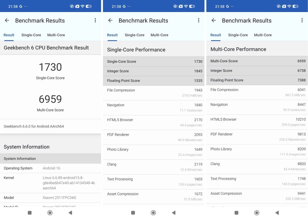 Am rulat mai apoi Geekbench 6. Telefonul a obținut următoarele scoruri: