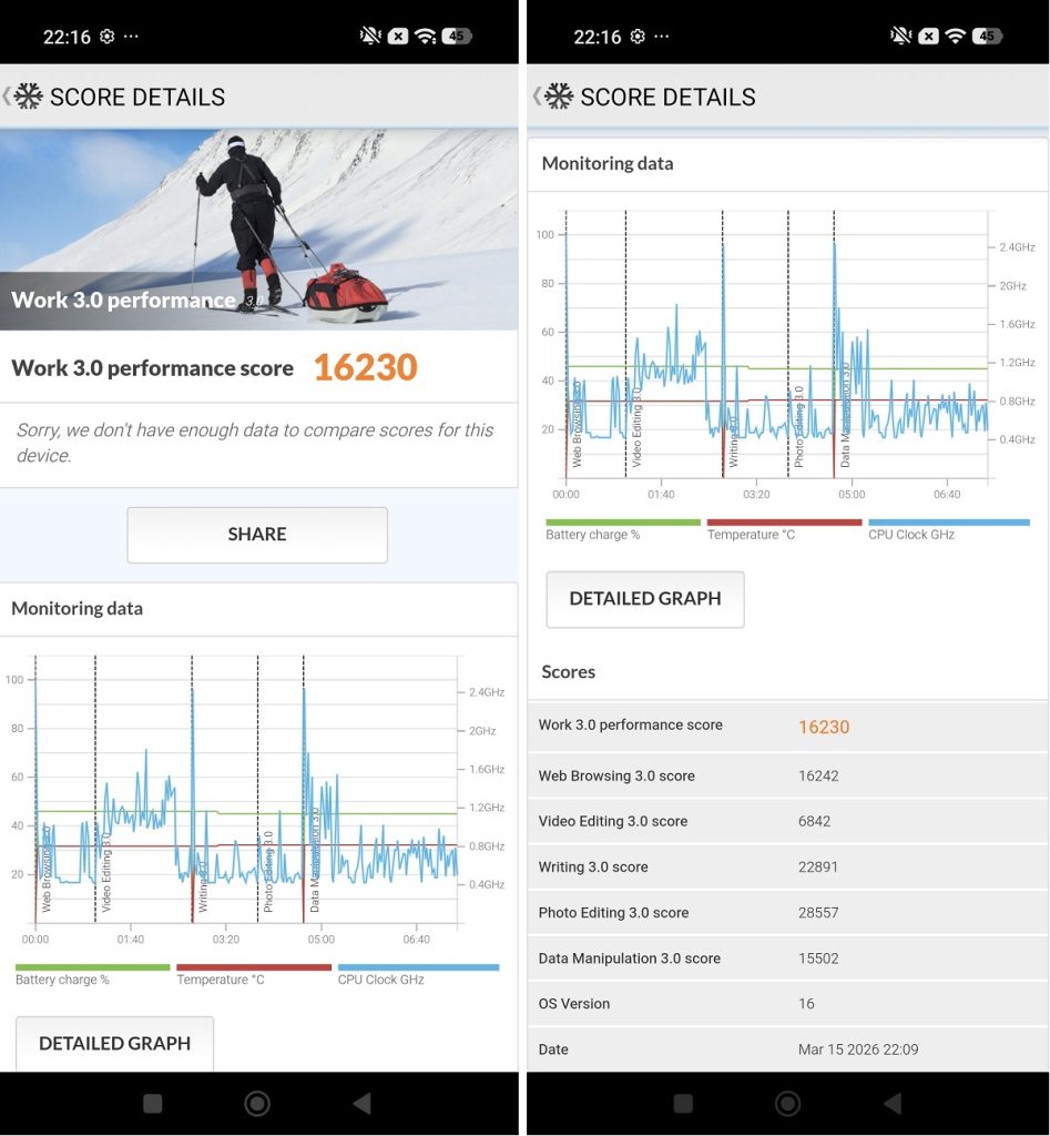 O să revin și cu un test de baterie care să confirme cele afirmate mai sus. Probabil testul de baterie din PCMark, pentru că permite și comparații cu telefoanele testate anterior.
