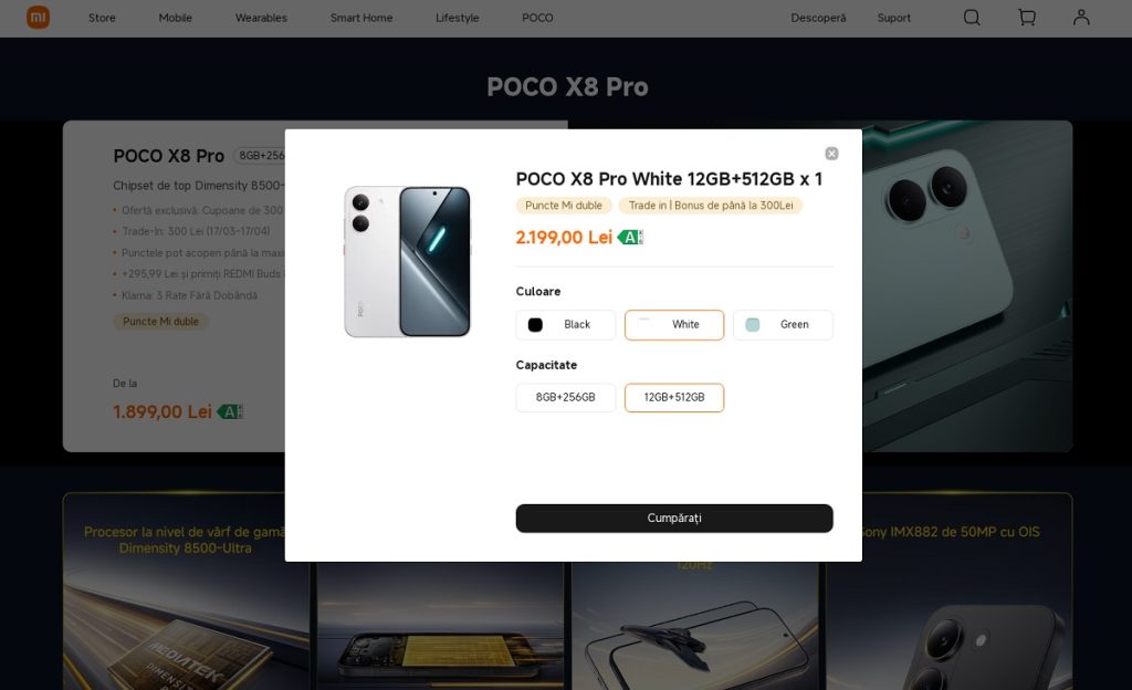 Modelul testat de noi are un preț de vânzare de 2200 lei pe site-ul/magazinul oficial al companiei din România. Pentru o perioadă limitată de timp, cumpărătorii primesc un cupon valoric de 300 de lei la achiziția telefonului. Dar și o reducere suplimentară de 300 de lei dacă aduc la schimb un telefon vechi. Mai jos aveți prețul într-o captură de ecran.