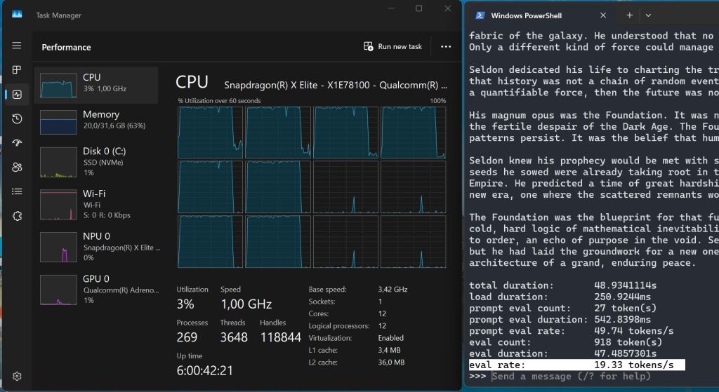 M-am desumflat rapid când am înțeles că nu am cum să mă folosesc de NPU pe un sistem Windows 11 on ARM Copilot și nici măcar pe GPU, singura consolare era că speram că o să se miște măcar acceptabil pe CPU.