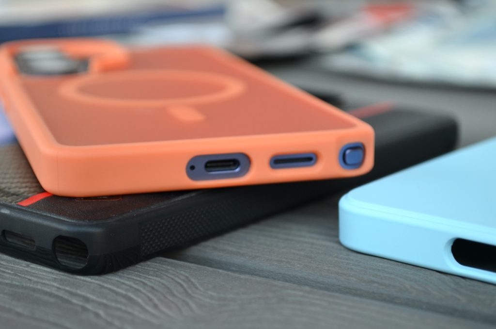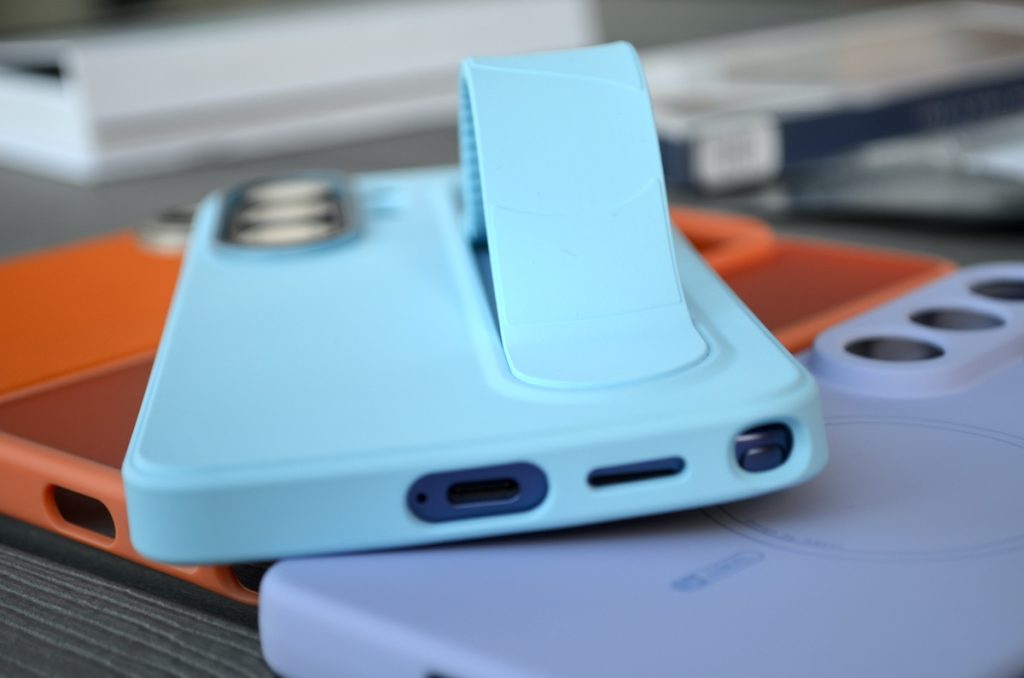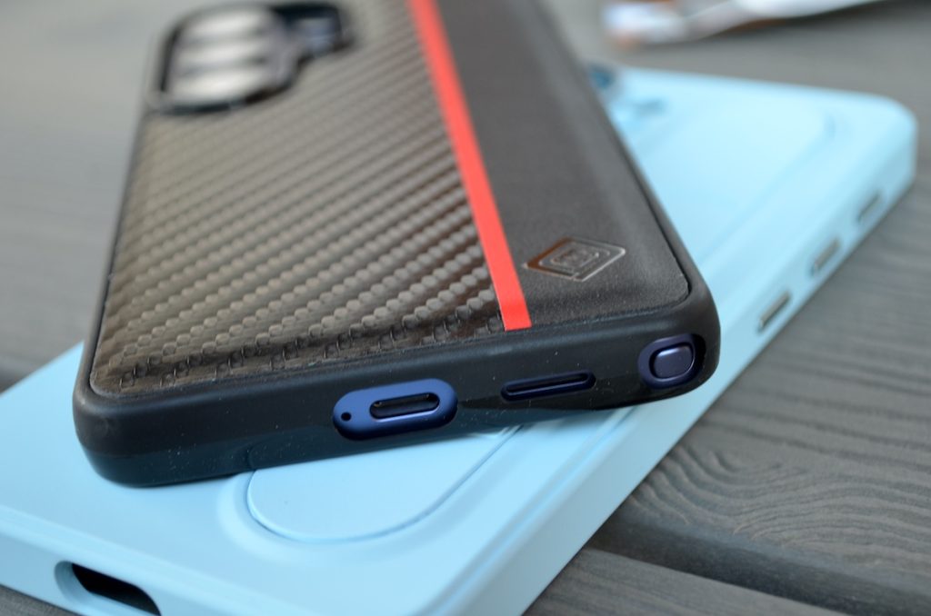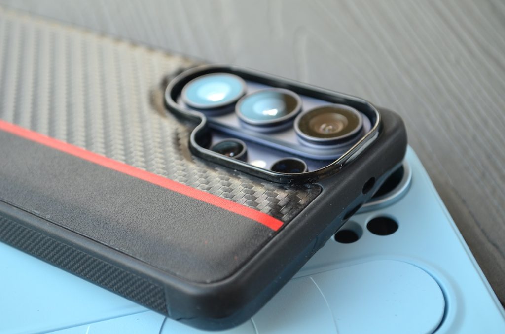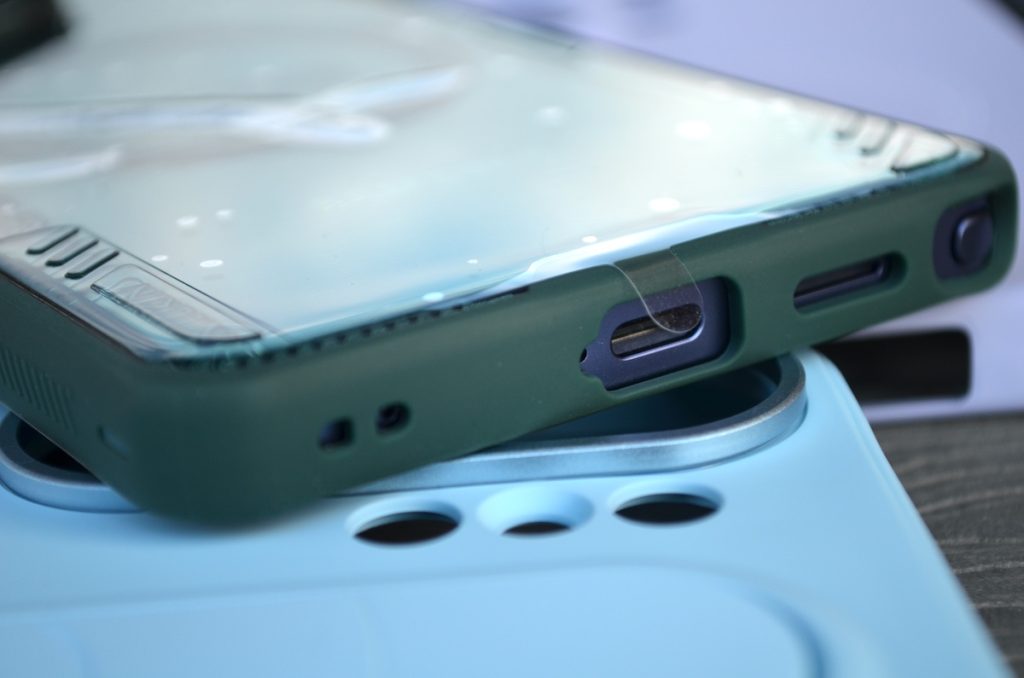 Acoperă foarte bine toată carcasa și datorită faptului că e făcută dintr-un material aderent, permite o prindere foarte bună. Nu mai pun la socoteală că are suport pentru MagSafe așa că veți putea încărca wireless telefonul fără nicio problemă cu husa montată. Husa e bine realizată, cu tăieturi exacte pentru accesul la sloturi și la S Pen.