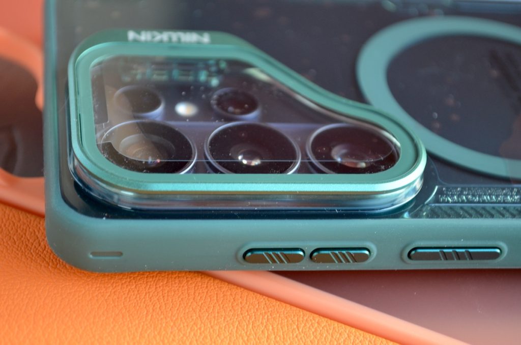 Încep cu una transparentă de la NILLKIN – Iceblade Prop with MagSafe Green care oferă o protecție suplimentară pentru accesul la camerele foto, printr-un sistem de glisant.