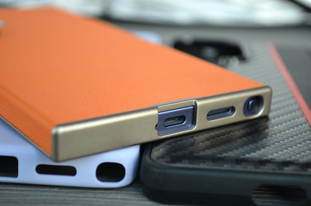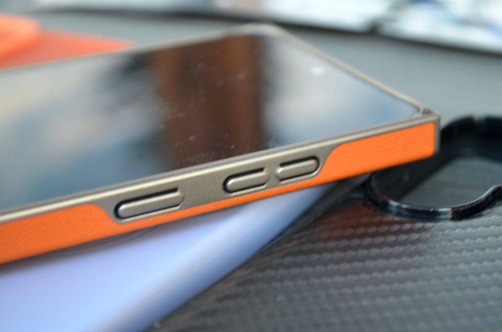 După cum se poate vedea și în pozele de mai sus, husa îmbracă complet telefonul, oferind protecție și la butoane. Tăieturile pentru accesul la difuzor și portul SUB Type-C sunt exacte și marginile sunt ranforsate. Textura ce imită pielea permite o aderență foarte bună.