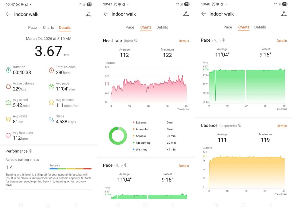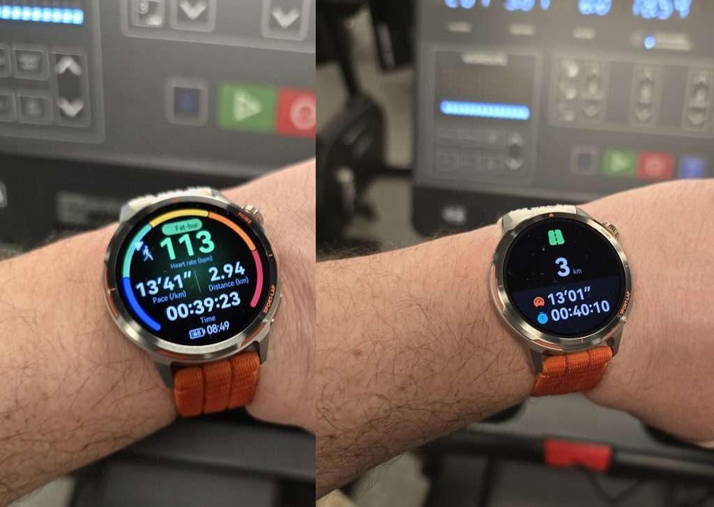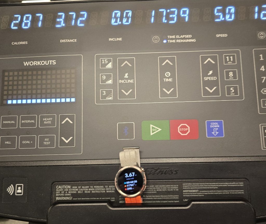 În momentul în care am încheiat antrenamentul, ceasul mi-a sugerat un proces de recuperare. Tocmai de aceea încă mergeam pe bandă atunci când am realizat fotografia.
