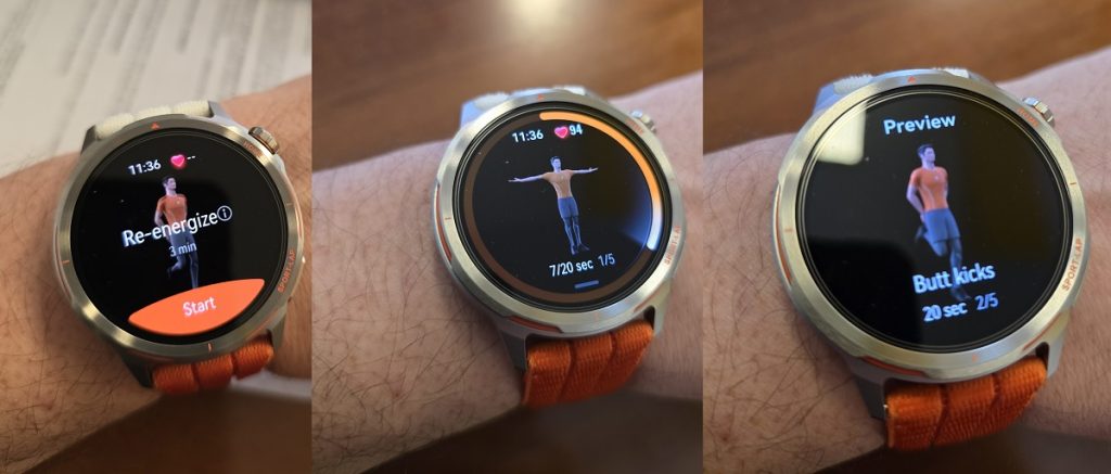 Mai trebuie să menționez aici faptul că în momentul în care ceasul sesizează că stai prea mult așezat la birou, nu doar că te face atent, dar îți și sugerează o scurtă rutină de învioare, de trei minute.