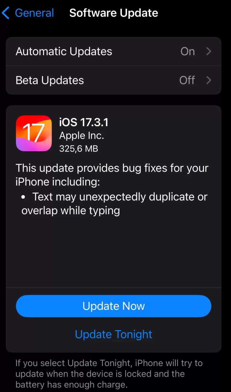 iOS 17.3.1 vine sa repare un bug de afisare a informatiei
